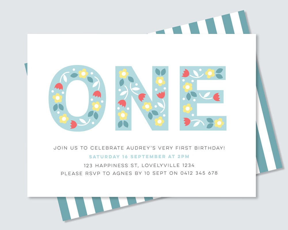 Girl S First Birthday Party Invitation Folk Floral 1st Birthday