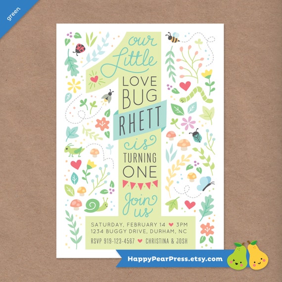 Love Bug Printable 1st Birthday Party Invitation Diy Custom Printable Invite Baby Toddler Kids Ladybug Bee Butterfly Bugs
