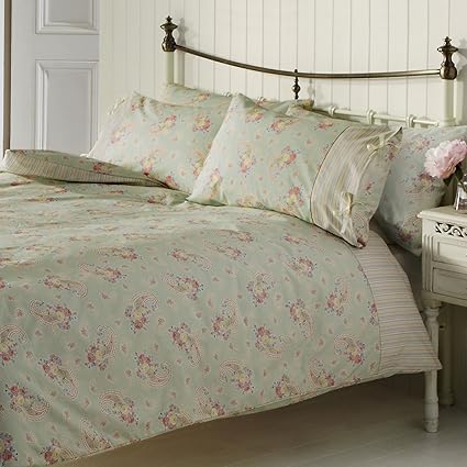 Vintage Vantona Isabelle Paisley Print Bedding Duvet Cover 2 Pillowcase Set Duck Egg King Size